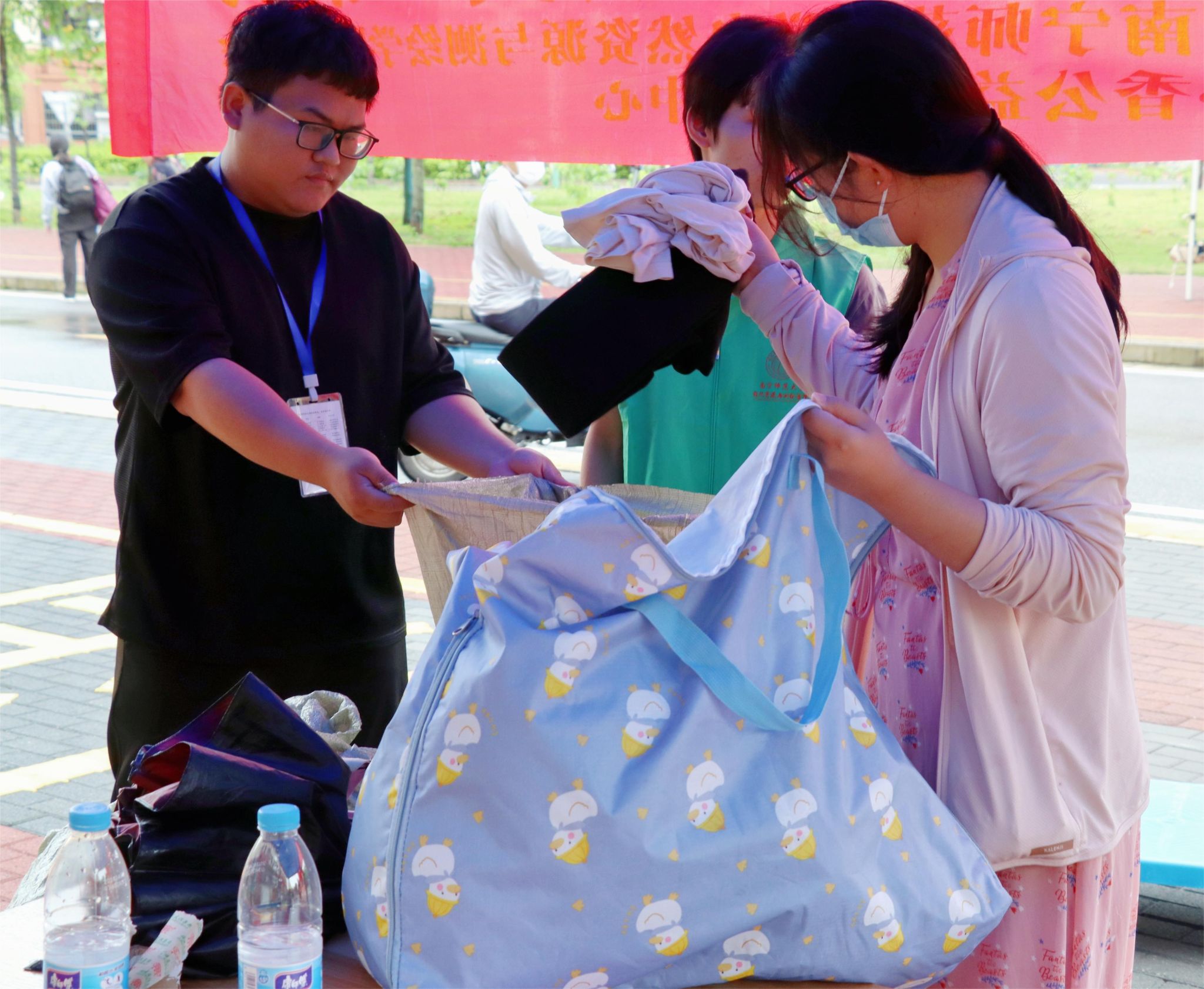 本次活动得到校区广大师生的关心支持和积极参与,大家纷纷到现场捐赠衣物。志愿者们耐心地向同学们讲解此次活动的内容、目的、意义以及目标等活动细节,并把大家捐出来的衣物分门别类贴上标签,放到提前准备的编织袋里。对于捐赠衣物较多的同学,志愿者还上门帮忙搬运,做好信息登记。同学们捐出的每一件衣物都承载着一份希望。截止活动结束,共收集到武鸣校区师生捐赠闲置衣物两千余斤。这些衣物将由广西心香公益社工服务中心回收消毒后捐赠给有需要的人,为他们送去一片温暖。