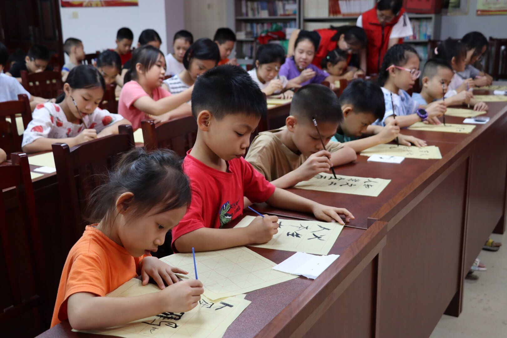 活动以毛笔书法课程的开始拉开帷幕。在志愿者们的授课和讲解中,小朋友们对中文字体的演变及历史有了新的认识,他们不仅欣赏到了行云流水般的书法作品,同时还亲手握笔,领略到了中华书法的魅力。随后是传统文化故事会课程,一个个蕴含深厚文化底蕴的传统故事都如同一颗颗璀璨的明珠,照亮了孩子们的心田,激发了他们对传统文化的浓厚兴趣。最后的绘制京剧脸谱课程将孩子们带入了五彩斑斓的戏曲世界。在志愿者们的指导下,他们仔细观察、精心描绘,将一个个生动的脸谱形象跃然纸上。从黑白分明的脸谱轮廓到绚烂多彩的颜料填充,每一笔都承载着孩子们对传统文化的热爱与传承。