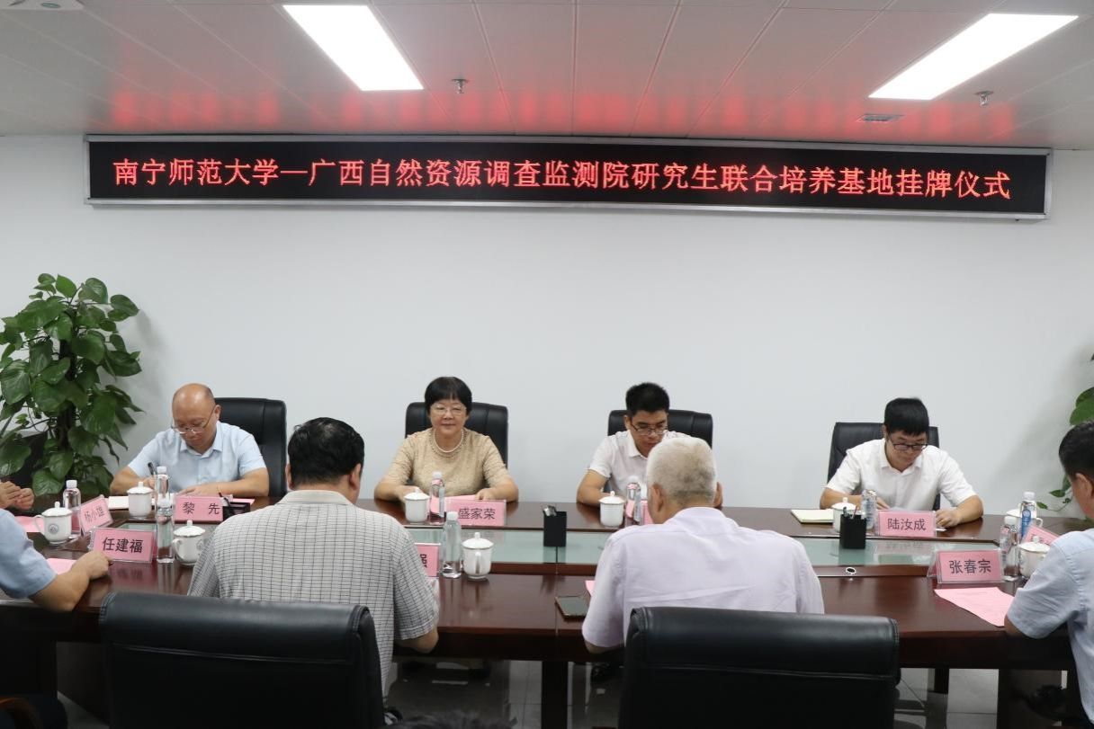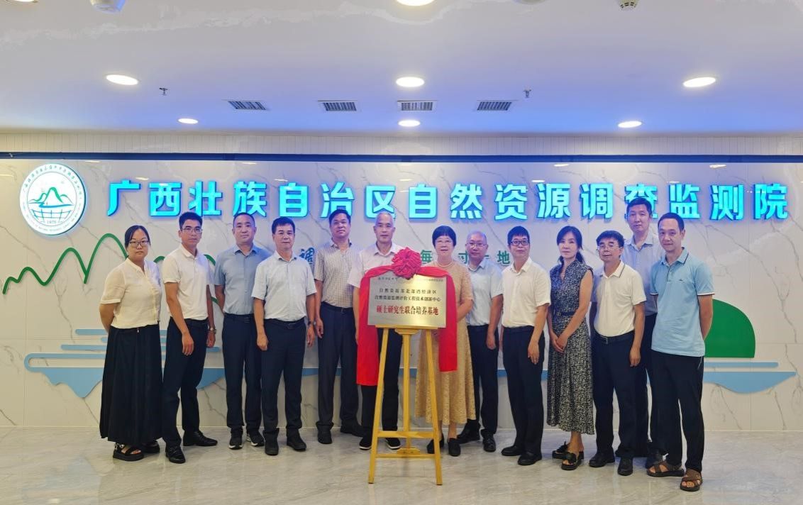 最后,双方共同为研究生联合培养基地举行揭牌、合影留念,仪式结束后,与会人员实地参观广西自然资源调查监测院,并对研究生联合培养基地的下一步工作进行了研讨和交流。