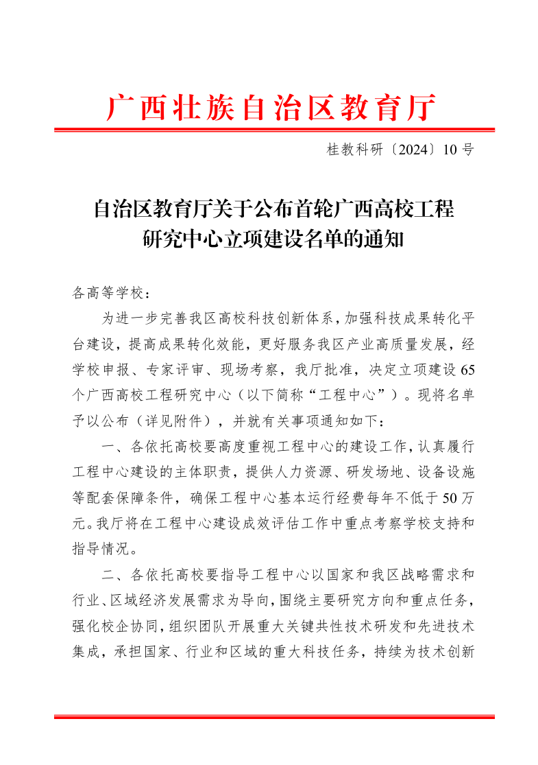 近日,自治区教育厅正式公布了首轮广西高校工程研究中心立项建设名单。其中,由公司牵头,携手广西国土资源规划设计集团有限公司及西安城市发展资源信息有限公司共同申报的“‘卫星+’空间AI自然资源智能治理广西高校工程研究中心”获批自治区教育厅首轮广西高校工程研究中心。