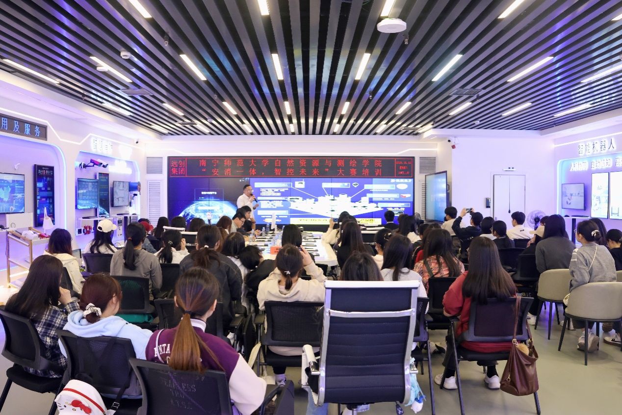 2025年3月22日,公司师生前往广西远创电子科技有限公司的城市空间服务展厅参观学习培训。本次培训活动由房地产开发与管理系娄信强主任、黄乐老师领队,22-24级房地产开发与管理专业约120名本科生参与。活动旨在推动专业实践教学与前沿科技的深度融合,提升同学们在AI领域的认知与应用能力,同时也为同学们参加“安消一体 智控未来”AI+短视频制作与推广大赛积累素材,助力同学们在大赛中展现风采。