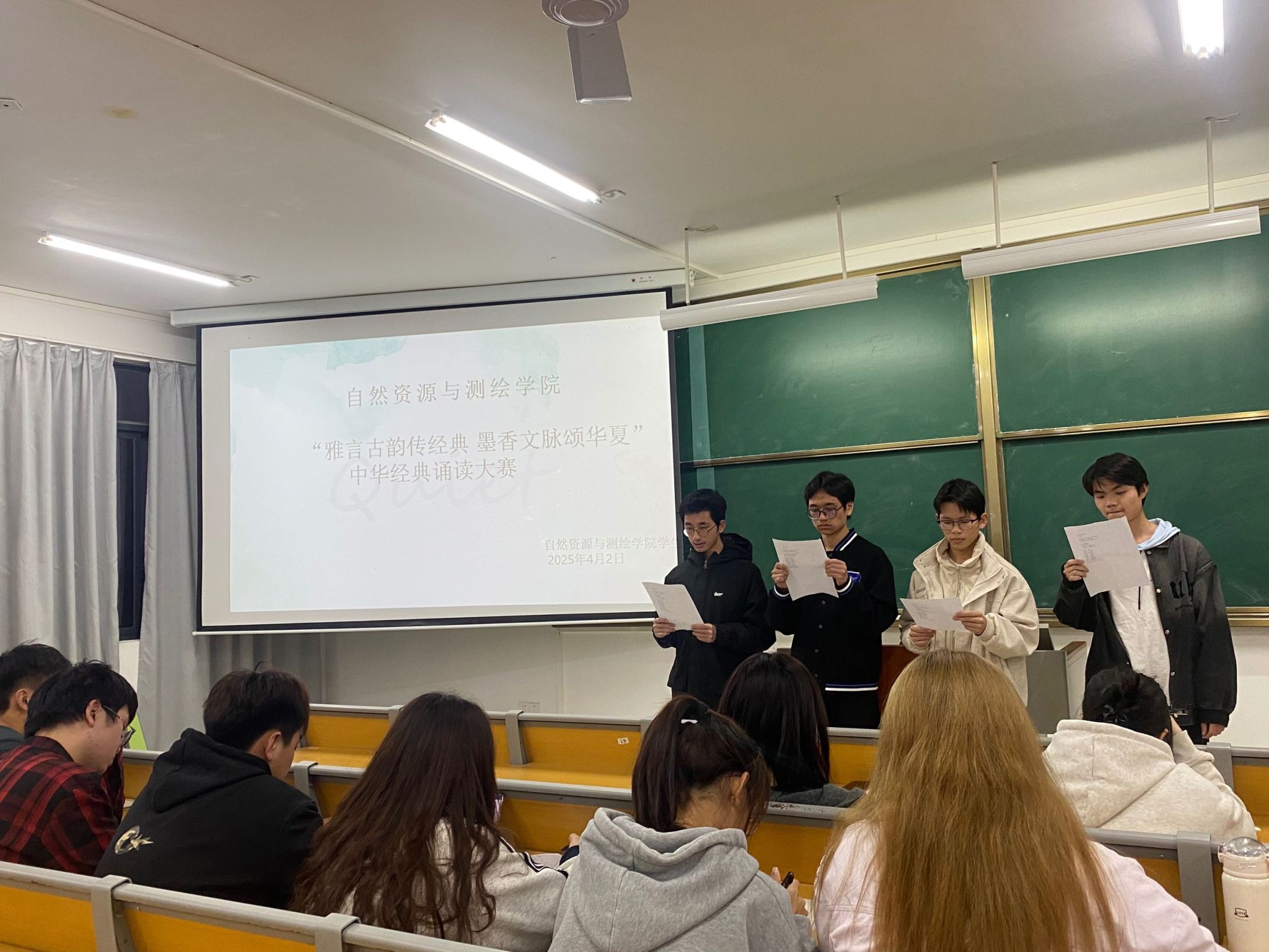 比赛过程中,参赛选手积极准备,以饱满的情感致敬经典,现场评委则从诵读技巧、情感表达、创意形式等多个维度进行打分,最终评选出一等奖1人(23级土管2班周念)、二等奖3支(24级测绘1班、24级土管2班、24级房管班)、三等奖5支及参与奖4支。本次大赛以诵读经典的形式传承中华优秀传统文化,展现青年学子的文化自信与精神风貌,不仅是一场语言艺术的盛宴,更是一次对中华优秀传统文化的深度浸润。